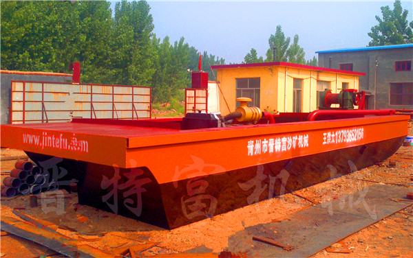 晉特富環(huán)??萍忌a的鉆探式抽砂選鐵船,適用范圍廣,維修費用低,是針對厚泥層抽沙選鐵的設備。